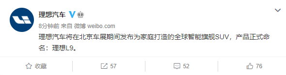 新浪科技讯 3月3日晚间消息,理想汽车宣布,将在北京车展期间发布为家庭打造的全球智能旗舰SUV,产品正式命名:理想L9。