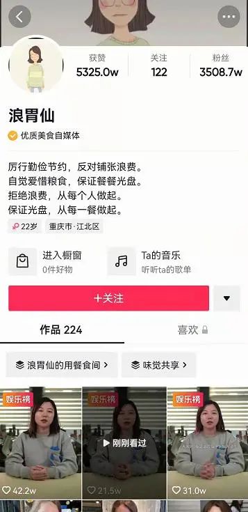 真实、接地气的风格和惊人的食量吸引众多用户前来围观,仅半年时间,浪胃仙就实现了粉丝量从20万到1291万的巨大跨越。