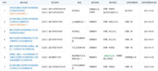 另据启信宝显示,从2020年10月起,一年时间内,天权星公司、游才梅(游絮)、李杭泽(浪胃仙)、浪胃仙公司打了7场官司。