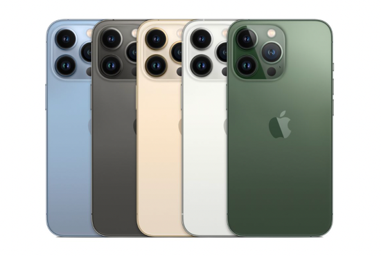 iPhone 13 Pro 和 iPhone 13 Pro Max 现在共有五种颜色:远峰蓝色、石墨色、金色、银色和全新苍岭绿色。