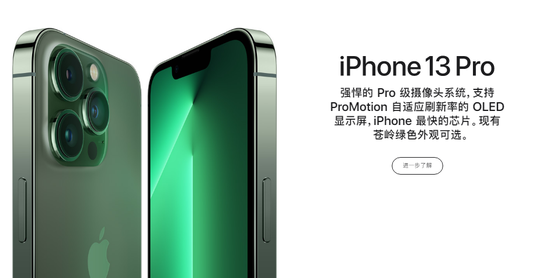 其中,iPhone 13 Pro/Pro Max两款机型新增了苍岭绿版本,而iPhone 13/13 mini则增加绿色版本。对比来看,苍岭绿色彩偏淡,普通版的绿色饱和度则更高。