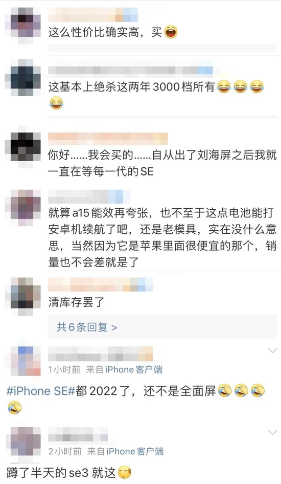 小屏党、情怀党们笑了,但也有期待全面屏新版iPhone SE的网友感慨“白熬夜”“苹果挤牙膏”↓