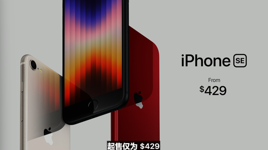 IT之家了解到,iPhone SE 3 起价 429 美元(3499 元人民币),拥有 64GB、128GB、256GB 三种存储版本,将于 3 月 18 日正式开售。