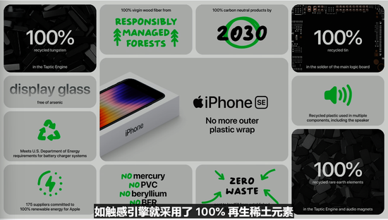 此外,iPhone SE 3 采用了更多环保元素,抛弃了塑料包装盒等等。