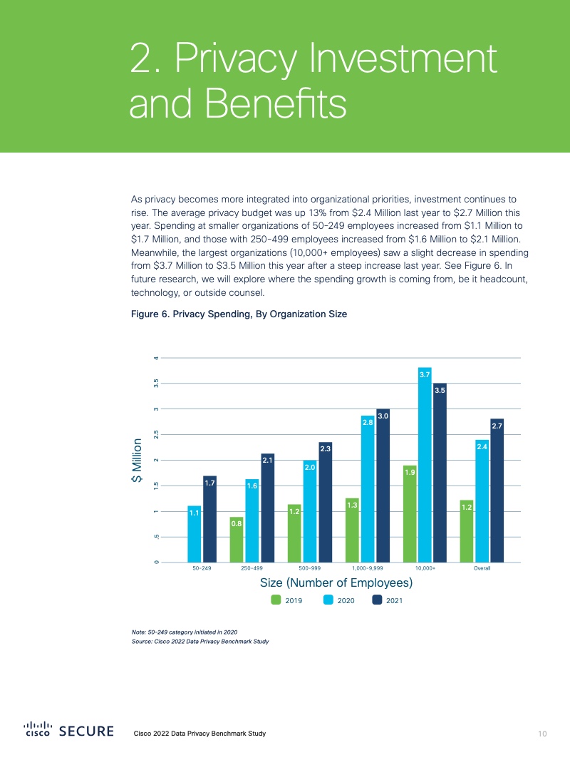 ● 全球企业在隐私保护方面的支出为240万美元,亚太地区企业此项支出平均达到230万美元。中国企业在隐私保护方面投资最高,平均支出为300万美元。