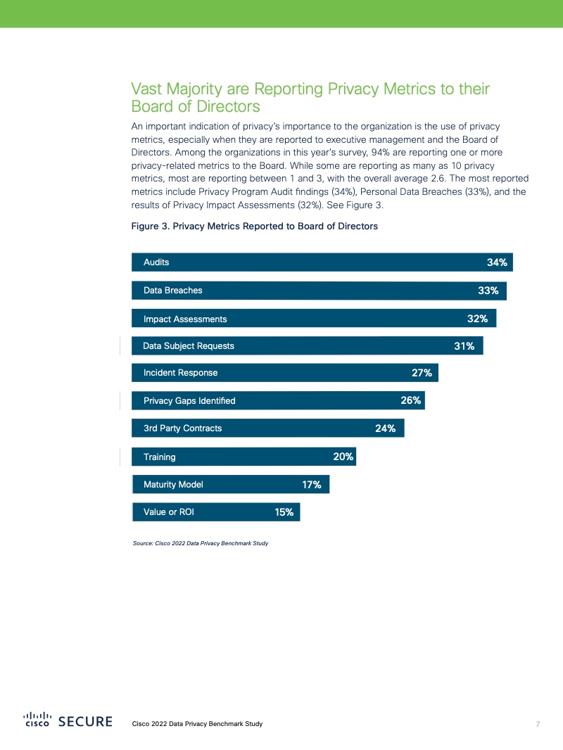 ● 目前,90%的企业向其最高管理层和董事会报告隐私指标。