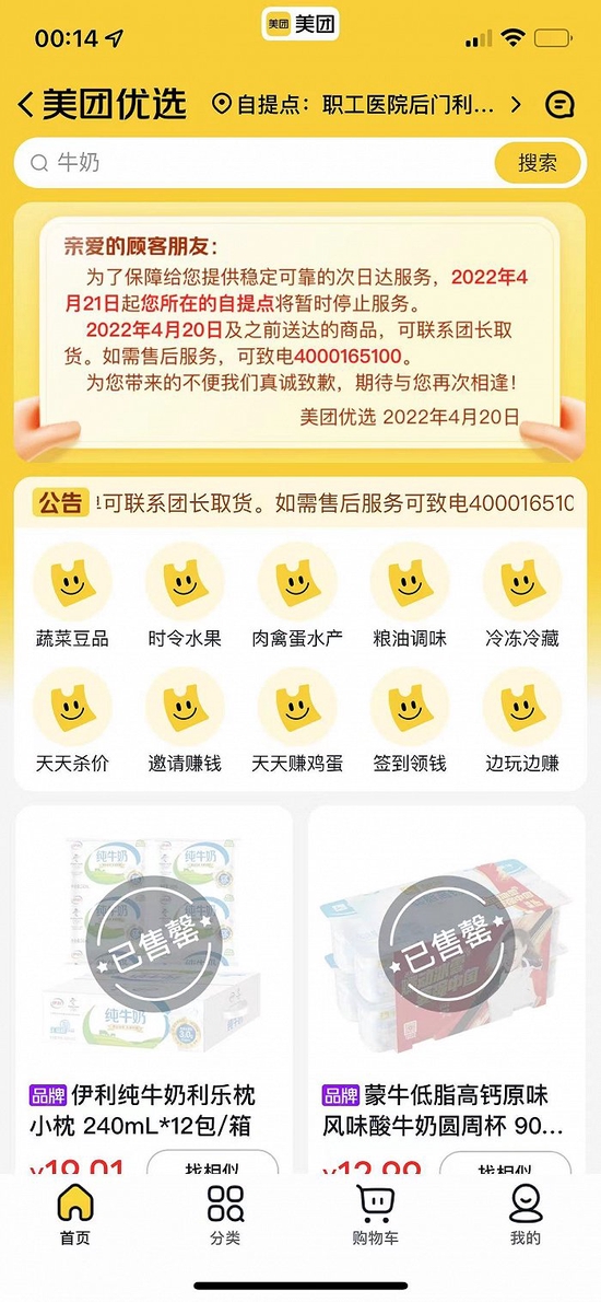 4月20日晚间,多位西北地区的消费者发现,周边的美团优选自提点已经陆续关闭。定位甘肃兰州城关区,点开美团优选即可看到首页顶部公告,称2022年4月21日起,您所在的自提点将暂时停止服务。