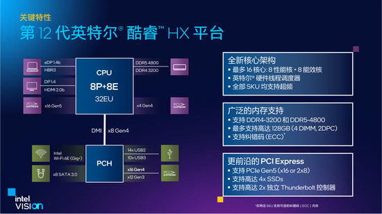 i7-12800HX:16核24线程,25MB三级缓存,最高4.8GHz,32EU核显