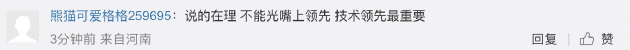对此,有网友表示“说的在理,不能光嘴上领先,技术领先最重要。”