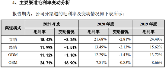 此外,原材料价格上涨也加剧了毛利率下滑的趋势,2019-2021年,创维电器的综合毛利率分别为14.96%、13.19%和11.74%。