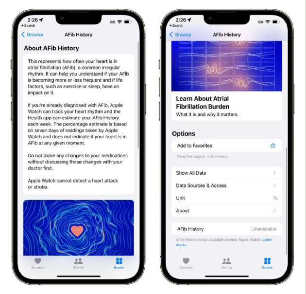 苹果公司iOS 16 和watchOS 9为房颤患者增加了一个查询病史记录的功能,目的是跟踪一个人房颤的时间和频率。在iOS 16 beta 3中,心房颤动历史部分已添加到健康应用程序中,目前,这个功能仅限于美国。