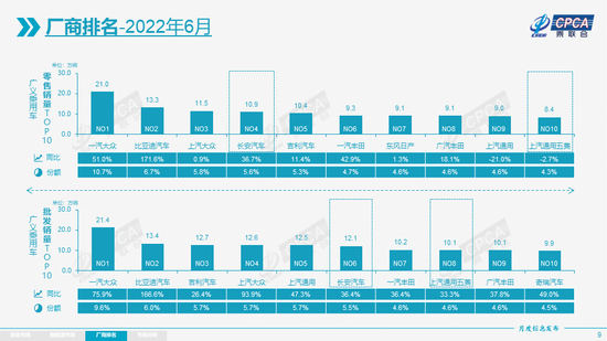 近几个月的主流自主车企的新能源车表现日益走强,在前8名新能源乘用车企业销量中,除了特斯拉,都是主流车企的新能源车品牌。相对于前两年的传统车企新能源表现较弱的情况,6月的主力乘用车企业的燃油车与新能源车协同发展的转型效果很突出。