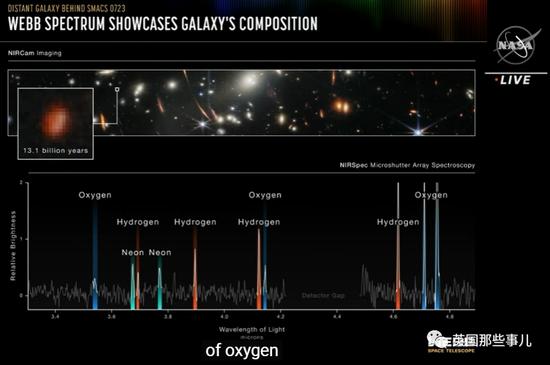 韦伯望远镜还对它进行了光谱分析,分析出了宇宙诞生初期的星系元素构成,主要还是氢,氧和氖