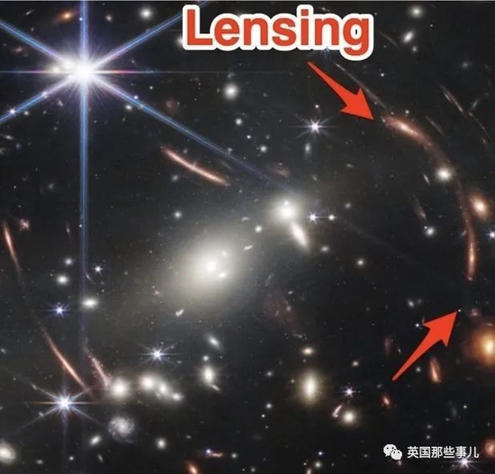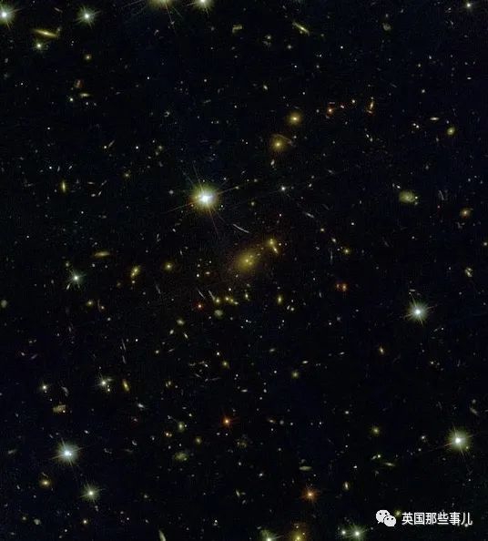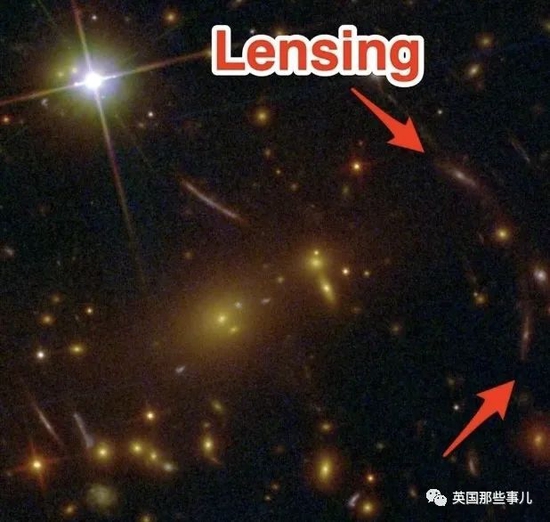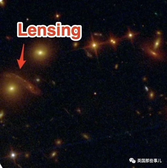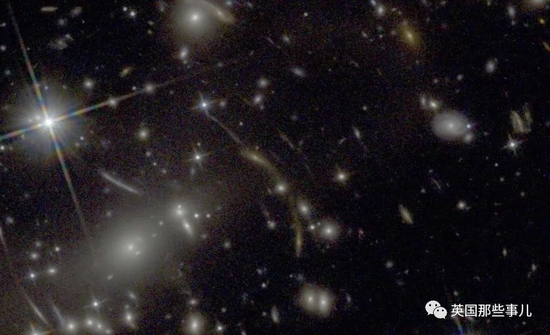 在哈勃拍摄的版本里,我们依稀看到了引力透镜的存在