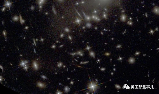 甚至,由于光线在宇宙间受(黑洞,星系等天体)引力影响发生的引力透镜效应(gravitational lensing),也能从图片上更清晰地看出来。