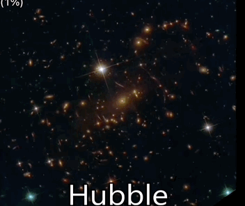 网上有人制作了哈勃和韦伯观测SMACS 0723星系团同一位置时的对比gif,从模糊到清晰,肉眼可见的科技进步。