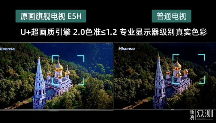硬件侧,大家比较熟悉的杀手锏技术,必然是分区控光,海信家的高端技术ULED就是背光分区技术,而E5H搭载的U+分区控光技术,在这个价位段有口皆碑。通过对电视显示画面的智能识别,从硬件侧控制背光亮暗。在大量黑色与彩色背景交织的画面里,通过黑色暗部调节、色彩部分亮度变亮,轻松实现了亮得更亮、暗得更暗,从而展现出更鲜明的画面与色彩。看了不少网上的评测,这个价位段的对比效果,确实不错。