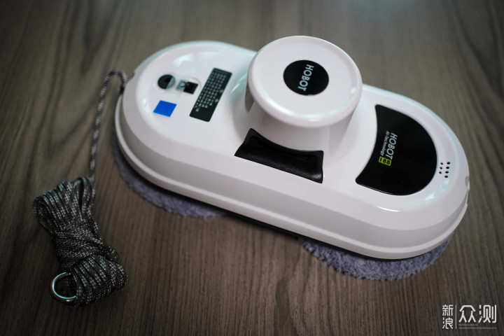 玻妞家的机器人样式清清爽爽,黑白配色也比较大气。上面凸起的部分方便使用时手握,下面则是两个圆形清洁盘布。使用起来通电后会真空吸附在窗户上,吸力很足。