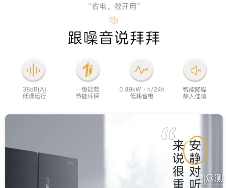 最后,也简单说说基础性能,但说实话我觉得对美的508来说谈这些真心是例行公事,因为底层能力做得确实是扎实的。38db的运作噪音,一级能效,实际的耗电在下面摆着,基本上都是非常优秀的水准了。