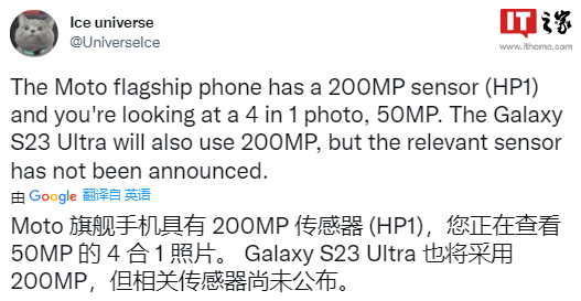 根据此前 @冰宇宙 的爆料,三星 Galaxy S23 Ultra 将采用 2 亿像素主摄,但该传感器尚未公布。这将是三星 Galaxy S Ultra 系列首次采用 2 亿像素主摄,并且有望首发全新传感器。同时,这意味着三星 Galaxy S23 Ultra 的影像实力将大幅提升。