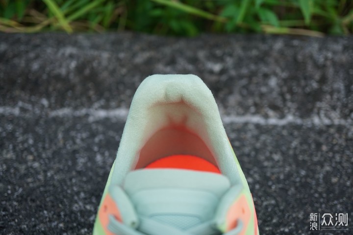▲很多跑鞋的脚背内侧会采用网布内置泡棉的做法,AGRAVIC FLOW 2则是采用的反绒,耐磨性会更好,打理起来会相对更花时间,舒适度没有问题,完全不会磨脚跟。