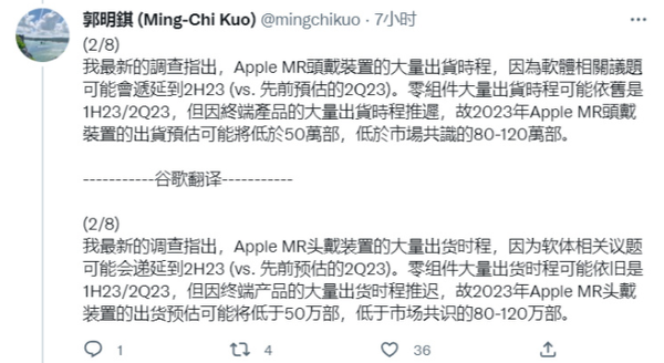 根据天风证券分析师郭明錤的说法,苹果AR和VR头显可能会推迟到2023年下半年才会量产出货,主要是因为“软件相关问题”。虽然其并未明说具体问题,但是不难推测这一软件问题极有可能是此前遭到曝光的苹果XR所搭载的操作系统——“xrOS”存在问题。