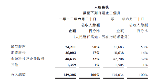 新浪科技讯 北京时间8月16日下午消息,腾讯控股(HKEX: 0700)今日发布截至6月30日的2023年第二季度财报:营收1492亿元,同比增长11%;净利润261.7亿元,同比增长41%;非国际财务报告准则下的净利润为375.48亿元,同比增长33%。