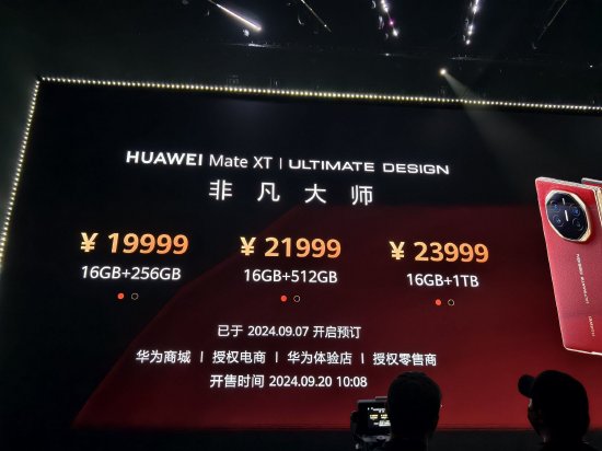 余承东称这款产品成本非常高,随着良率提升可能会有下降。售价方面,16GB+256GB售价19999元,16GB+512GB售价21999元,16GB+1TB售价23999元。