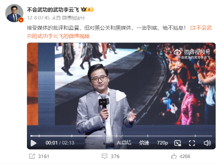 李云飞表示,“有时候,有媒体或者自媒体基于事实报导,批评我们,都没问题。还有些媒体不了解情况,出现一些误解性的报道,我们也都能接受。但如果有些媒体或自媒体恶意的揣着明白装糊涂,为了黑而黑,通过一些不实的和误导性的报道和信息,长期针对比亚迪,诋毁比亚迪。比如说一个礼拜有七天,至少五个工作日都在黑比亚迪,这个是不能接受也不能容忍的。”