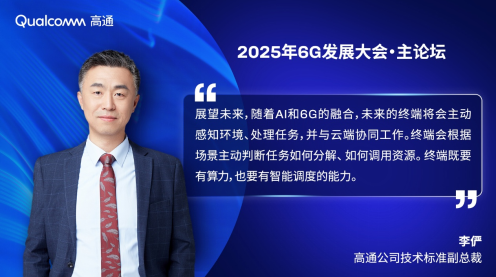 高通公司技术标准副总裁李俨博士出席大会主论坛,并发表题为《6G赋能全新用户体验与业务》的主题演讲。李俨表示,未来的AI将是“端—边—云”融合的架构,6G的使命之一就是成为AI与通信系统深度融合的重要支撑。高通持续深化技术投入:一方面通过骁龙品牌提供面向个人移动终端的计算平台,为终端侧AI提供强大支持;同时,高通跃龙平台为海量终端的开发及接入6G网络提供平台基础。