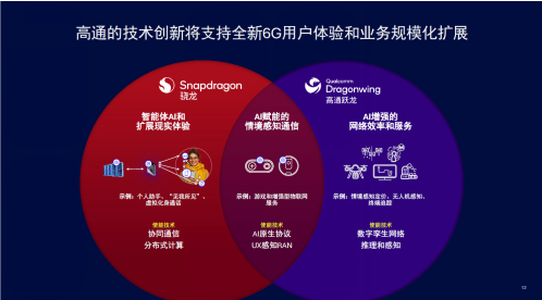 基于以上思考,我们认为6G的核心能力可以归纳为三个支柱:“AI赋能的新业务”、“AI赋能的新网络”,以及二者融合产生的“AI赋能情境感知通信”。为了更好地支撑这三个支柱,高通持续深化投入。一方面,我们通过骁龙品牌提供面向个人移动终端的计算平台,为终端侧AI提供强大支持。同时,高通跃龙平台则支持“万物互联”,能够为海量终端的开发及接入6G网络提供平台基础。