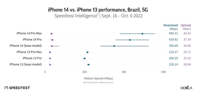 Ookla:苹果iPhone 14 Pro Max的5G下载速度比13快了130%