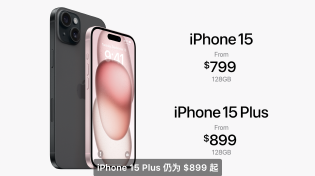 iPhone 15售价799美元,iPhone 15 Plus售价899美元。