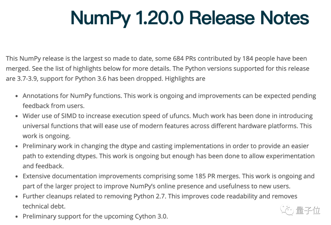 最近,NumPy上线了最新版本——NumPy 1.20。