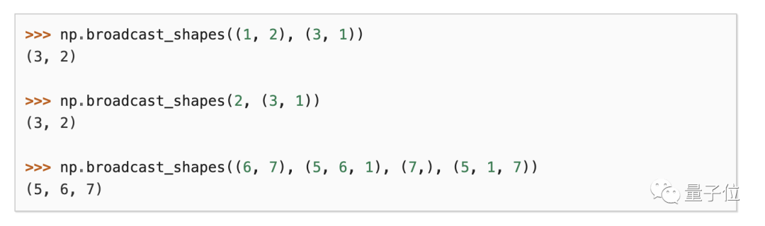 第三个,numpy.broadcast_shapes,一个面向用户的全新功能,从给定的形状元组相互广播中获得形状。