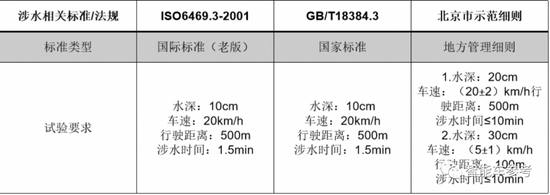 北京和上海的地方标准更加严格,涉水深度要求基本都在30mm。