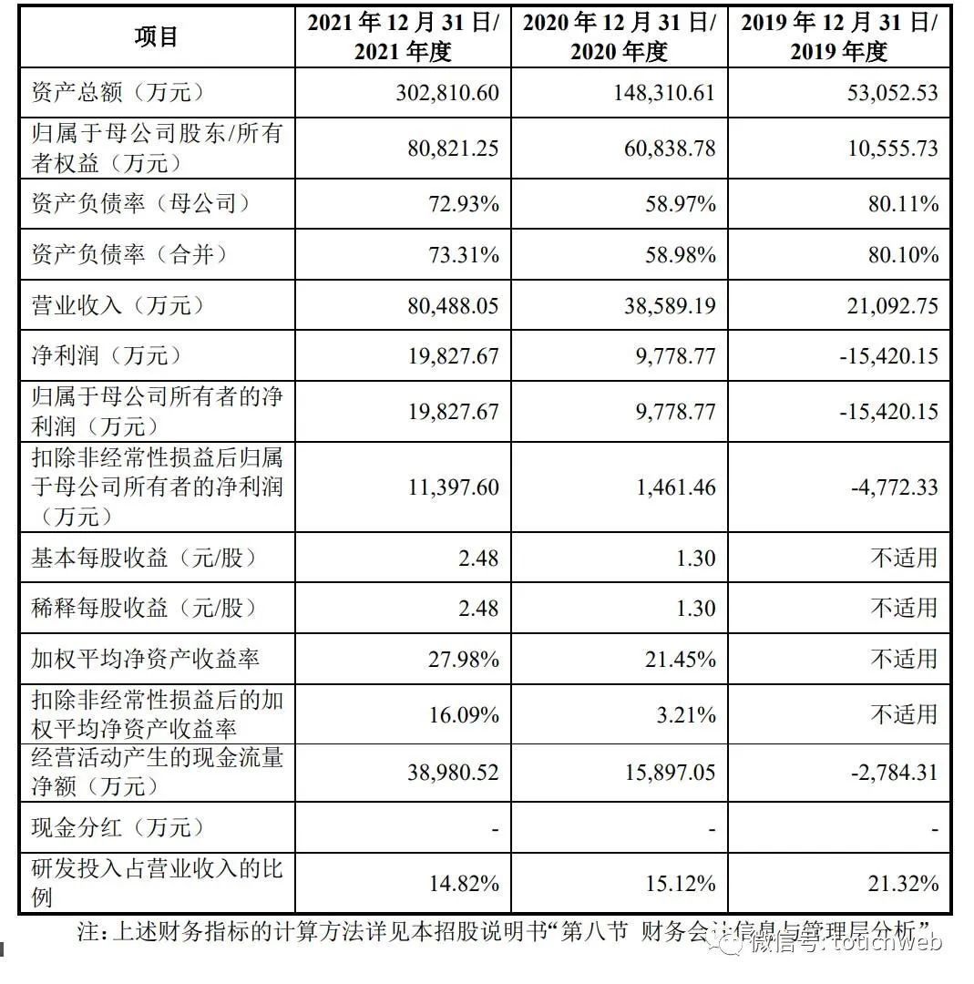 招股书显示,华海清科2019年、2020年、2021年营收分别为2.1亿元、3.86亿元、8亿元;净利分别为-1.54亿元、9779万元、1.98亿元;扣非后净利分别为-4772.33万元、1461.46万元、1.14亿元。