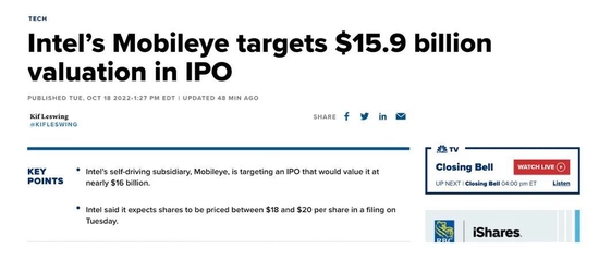 所以去年年末,英特尔宣布Mobileye上市计划时,市场曾给出了高达500亿美元以上的估值。但如今不到一年,由于当前科技IPO市场正面临近20年来最严重的低迷,让Mobileye的热度也随之大幅下降。