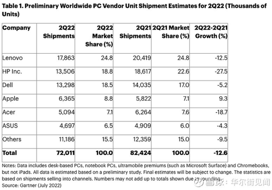 Gartner的数据显示,今年第二季度(4-6月),全球PC出货量同比下降12.6%,这也是全球PC市场9年来出现的最大季度跌幅纪录。其中,美国个人电脑需求下降17.5%,中国市场PC出货量同比下降幅度为16%。