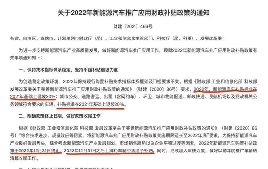 而今年是国家对新能源车补贴政策的收官之年,据AITO汽车微博消息,按照国家规定,2022年国家新能源汽车购置补贴政策将于2022年12月31日终止,2022年12月31日之后上牌的车辆不再给予补贴。