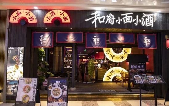 实际上,和府捞面在产业链的尝试从未止步,先试水火锅,开出“和府火锅和她的面”,而后趁着“餐饮+小酒馆”的热潮,推出子品牌“和府小面小酒”,再之后是主打聚会场景的“财神小排档”。今年5月,和府捞面又杀入兰州拉面赛道,开出首家“阿兰家兰州牛肉面”。