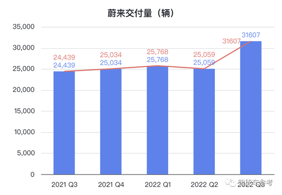 三季度其实蔚来的交付量创了新高,达3.1万辆,较2021年第三季度增长29.3%、较2022年第二季度增长26.1%。