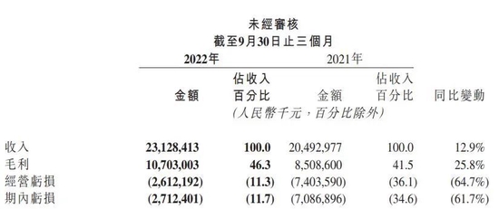 11月22日,快手发布了2022年第三季度财报。财报显示,快手在第三季度收入达到231.28亿元人民币,较去年同期增长12.9%。同时,净亏损为27.12亿元人民币,去年同期该项数字为70.86亿元人民币,同比减少61.7%。