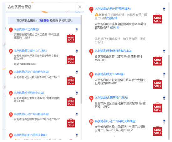 比如,合肥市的名创优品基本上都是在万达、国购广场、购物中心里,其门店的租金有多高,自然可想而知。