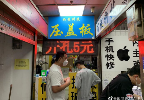 随着销路的逐渐打开,改造业务的逐渐增多,给 iPhone 开孔这种原本能让普通用户震惊的改装方式,批量改造的成本也随之大幅降低;如今在华强北,甚至已经有商家打出“开孔五元”的标语,来承接这种大批量给 iPhone 14 Pro 边框卡卡槽的加工业务。