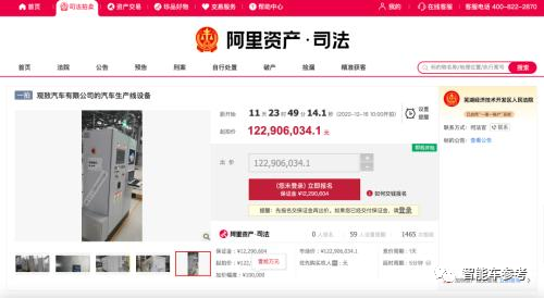 安徽芜湖经济技术开发区人民法院发布一则拍卖公告,标的为观致汽车有限公司的汽车生产线设备,起拍价约为1.23亿元。
