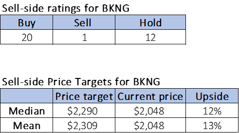 下表概述了Booking Holdings的卖方评级和价格目标。