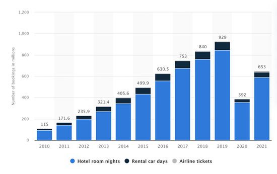 下图概述了截至2021年按细分市场划分的Booking Holdings。