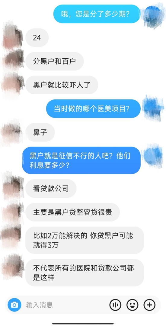 同时,小婉还表示:“医美贷分为黑户和白户,自己因为是白户,利息还算少的;如果是黑户的话,原本2万元的项目,要贷款3万元才行。”