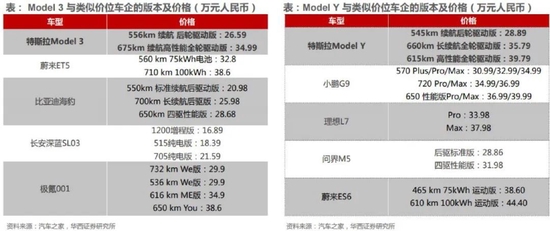 比如,2022年以前,特斯拉Model 3/Y 竞品较少,比当时蔚来和理想的车型更具有价格优势,但2022年下半年以来,比亚迪海豹、蔚来ET5、长安深蓝SL03、理想L7等价格相当甚至更低的车型不断冒出,给特斯拉带来了直接冲击,消解了其价格优势。